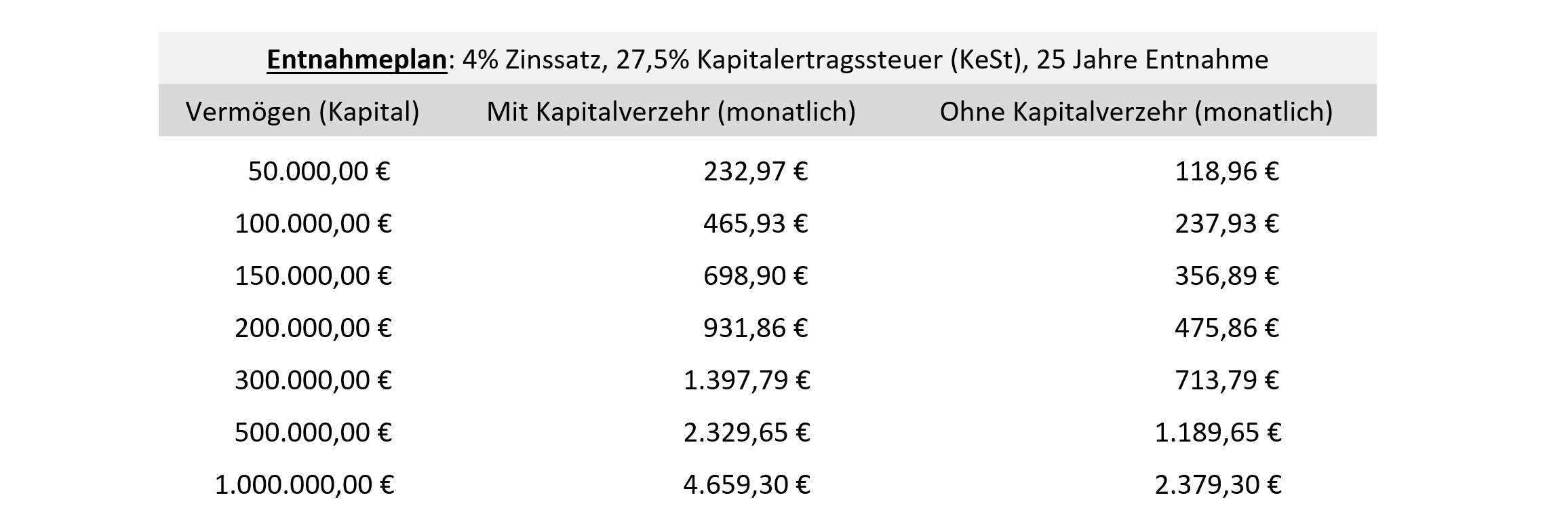 Wie viel Kapital kann ich monatlich entnehmen?